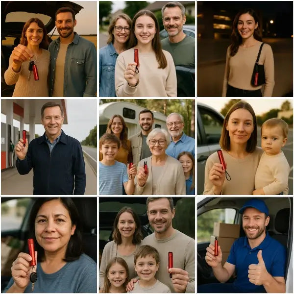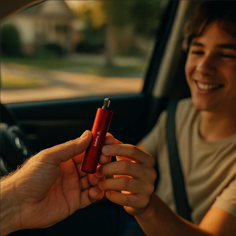 El profesor de autoescuela nos recomendó llevar una herramienta de emergencia. Elegí SafeTool porque es compacto y funciona con cristales laminados modernos.